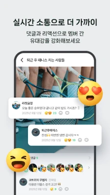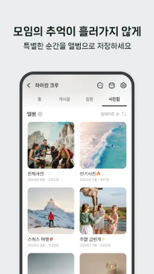 멤버들과의 진정한 교감은 BAND에서 더욱 깊어집니다. 댓글과 리액션으로 서로의 이야기에 공감하고, 라이브 기능을 통해 시공간을 넘어 생생하게 소통하며 유대감을 강화하세요. 소중한 사진과 영상은 테마별 앨범으로 깔끔하게 보관되어, 언제든 다시 꺼내볼 수 있는 영원한 추억이 됩니다. 또한, 투표로 의견을 모으고, 할 일 목록으로 공동 작업을 효율적으로 진행하며, 함께하는 미션으로 동기 부여를 얻는 등, BAND는 모임의 성장과 발전을 위한 다채로운 운영 도구를 제공합니다.