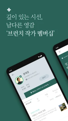 "브런치"에서는 매일 새로운 영감을 선사하는 '홈'에서 다채로운 작품들을 만나볼 수 있습니다. 탐색의 즐거움을 더하는 '발견' 탭에서는 원하는 글, 작품, 작가를 직접 검색하거나 당신의 취향에 꼭 맞는 맞춤형 글 추천을 받을 수 있습니다. 아직 로그인 전이라면 "브런치" 에디터가 엄선한 추천 글과 관심사 주제별 최신 글들을 통해 풍성한 콘텐츠의 세계를 미리 경험해 보세요. 마음에 든 작가와 작품은 '구독'을 통해 한곳에 모아두고 편리하게 즐길 수 있으며, 깊은 공감을 남긴 작품들은 '내 서랍'에서 언제든 쉽게 찾아볼 수 있습니다.
