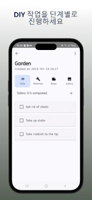 DIYProjectPlanner는 집 수리, 공예, 리모델링 등 모든 DIY 프로젝트를 위한 최고의 도구입니다. 계획부터 실행, 관리까지 작업, 비용, 아이디어를 한곳에서 손쉽게 관리하며, 완벽한 프로젝트 완성을 돕습니다.