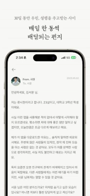 마음속 깊이 간직했던 진솔한 이야기가 있나요? 누군가에게 오직 글로만, 정해진 시간 동안만 마음을 나누는 특별한 경험을 선사합니다. 30일이라는 한정된 기간 동안, 오직 편지로만 이어지는 이 관계는 당신에게 새로운 설렘과 발견을 가져다줄 것입니다. 서로의 얼굴도, 이름도 모른 채 오직 마음으로만 소통하며, 그 어떤 만남보다도 순수하고 깊은 인연을 맺어보세요.