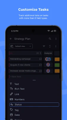 단순한 목록 관리를 넘어, Plaky는 협업의 핵심을 지원합니다. 각 업무에 책임자를 지정하고 명확한 마감 기한을 설정함으로써, 누가 무엇을 언제까지 완료해야 하는지 투명하게 관리할 수 있습니다. 또한, 기본 필드만으로는 부족한 정보를 위해, 각 작업에 사용자 지정 필드를 추가할 수 있는 강력한 기능을 제공합니다. 특정 프로젝트나 팀의 고유한 요구 사항에 맞춰 필요한 데이터를 자유롭게 추적하고 기록하여, 어떠한 세부 정보도 놓치지 않고 완벽하게 관리할 수 있도록 유연성을 더합니다.