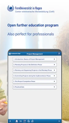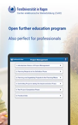 이 앱은 FernUni 수료 과정을 위한 지원을 제공합니다. 첫 번째 장은 무료 미리보기가 가능하며, 전체 콘텐츠는 Hagen FernUniversität 평생 교육 센터(CeW)를 통한 예약 후에 이용할 수 있습니다. 수료 과정 학습을 위한 핵심 도구입니다.