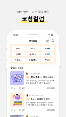 상상코칭은 성적 향상뿐만 아니라 올바른 공부 습관 형성, 나아가 사춘기 정서 관리까지 아우르는 전인적 코칭을 지향합니다. 학습 자료가 필요할 때마다 언제든 꺼내 볼 수 있는 '코칭컬럼'에서는 인기 선생님들의 실전 노하우가 매일 새롭게 업데이트되며, '스터디존'에서는 내신과 입시 대비를 위한 방대한 학습 자료를 무제한으로 활용할 수 있습니다. 국영수 주요 과목부터 인성 교육, 코딩 학습까지, 상상코칭 하나로 우리 아이의 무한한 가능성을 열어주세요.