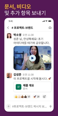 팀원 개개인이나 특정 그룹과의 실시간 교류는 기본입니다. 텍스트 메시지를 주고받거나, 필요시 즉각적인 음성 통화로 신속한 의사결정을 이끌어낼 수 있습니다. 또한, **Slack** 내에서 문서를 안전하게 공유하고 함께 편집하며, 적절한 이해관계자들과 협업하는 과정을 혁신적으로 간소화합니다. 복잡한 워크플로우를 단순화하여, 아이디어가 순조롭게 흘러가고 프로젝트가 막힘없이 진행되도록 돕습니다.