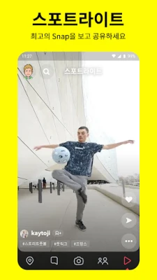 친구들과의 소통은 실시간 메시지로 생생하게 이어가고, 최대 16명과 동시에 영상 채팅을 즐기며 필터와 렌즈로 더욱 유쾌한 시간을 보낼 수 있습니다. 나와 친구만을 위한 특별한 Bitmoji인 Friendmoji로 더욱 친밀한 감정을 표현해 보세요. 친구들의 소소한 일상부터 관심사에 기반한 커뮤니티 스토리, 속보 뉴스, 그리고 Snapchat 오리지널 프로그램까지, 다양한 스토리를 탐색하며 세상을 발견하는 즐거움을 경험해 보세요. 특히 스포트라이트에서는 Snapchat 최고의 순간들을 모아 보여주며, 당신의 개성 넘치는 스냅을 공유하거나 인기 콘텐츠를 편안하게 감상하고 친구들과 나눌 수 있습니다.